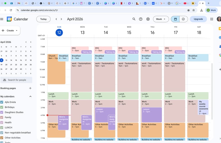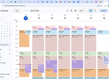 I architected a high-performance calendar system using strategic color-coding to ensure the seamless scheduling of complex meetings and personal non-negotiables. By prioritizing high-leverage tasks and setting up automated reminders, I eliminated all scheduling conflicts and protected 20+ hours of weekly deep-work, effectively optimizing productivity for a balanced, stress-free operation.